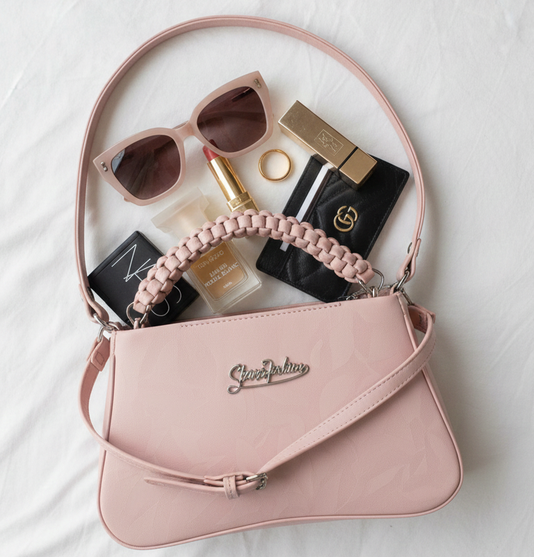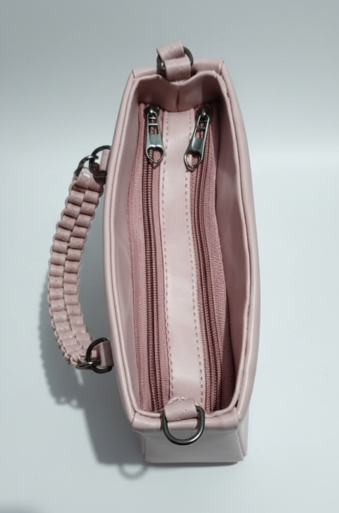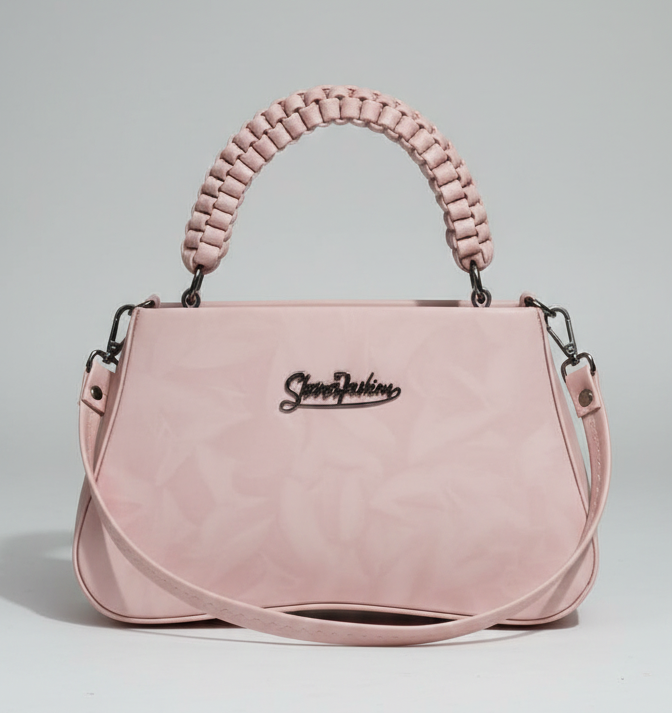 Stylish Women’s Mini Handbag with Braided Handle & Detachable Sling Strap | Glossy Pink Party Hand Bag